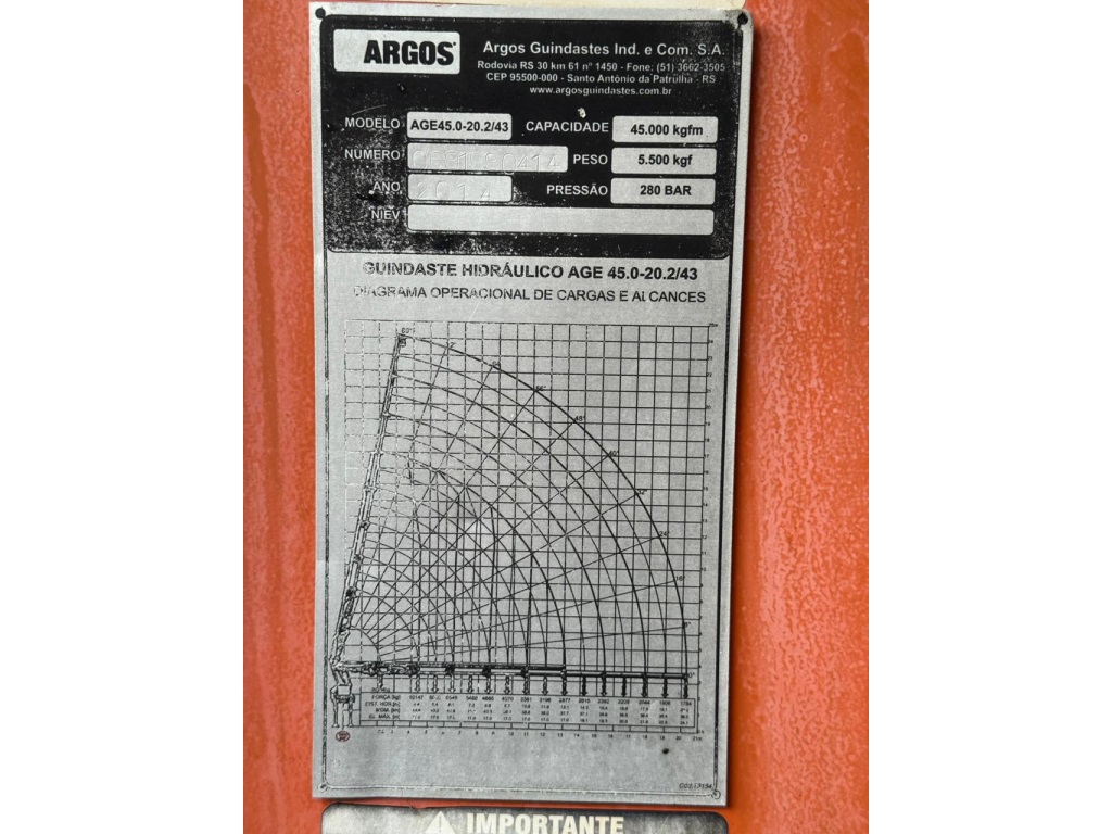 Venda de Caminhão Munck 45 ton Ford Cargo 2423 •6x2 • Ano: 2014 • Quilometragem: 128.000 km rodados • Parabrisa original de fábrica • Ar-condicionado • Pneus novosEquipamento: • Munck Argos AGE 45 ton com (Rádio controle). • 04 lanças hidráulicas • 04 lanças manuais • Patolas dianteiras e traseiras • Carroceria de madeira de 6,70 metros • Equipamento 100% operacional, pronto para o trabalho?? Localização: Contagem – MG?? Valor de venda: R$ 420.000